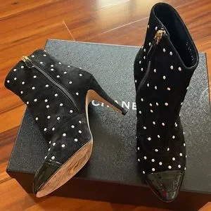 Worn twice Chanel Short Boots Suede Calfskin/Pearls 85mm