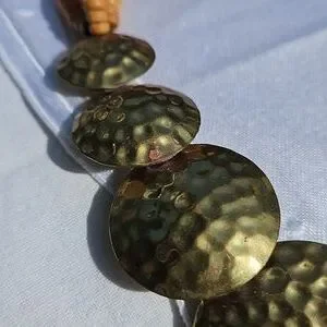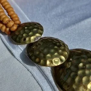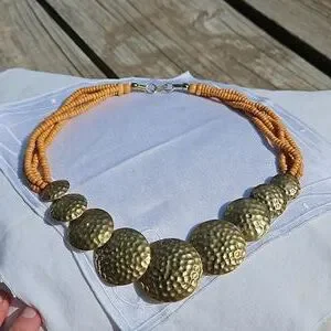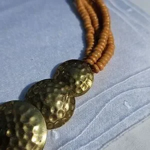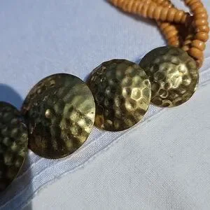 Vintage Celluloid Beaded Multi-strand into Brass Circles necklace.