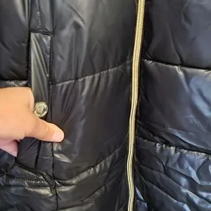 Brand new jacket without tags, will reach at about knee length, has three pockets, one od which is on the inside of the jacket. Thr hood has faux fur and can be removed wt your leisure.