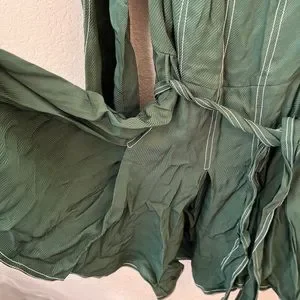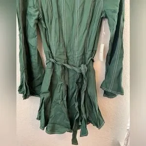 Dipped in a fresh evergreen contrasted by sleek white stitching, this mini ruffle is styled to perfection with its tailored sleeves and flattering cinched waist.