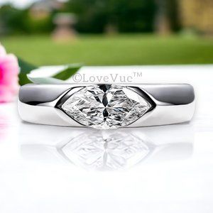 Certified 1ct. t.w. Moissanite Diamond Marquise Cut Unisex Engagement Ring VVS1
