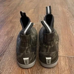 Huk men’s “Performance Fishing” deck boots. Size Various. Camo: Black, brown and army green. Black detailing. Front and rear pull tabs. Man made upper. Rubber outsole. NWOT. See photos. (Pair in photos is a size 8.)