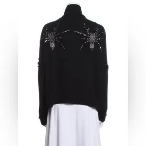 Thomas Wylde black cashmere sweater with beaded spiders 🕷 on back. Epaulets on shoulders. Cross over closure details.