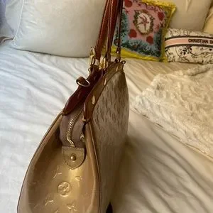 Gorgeous Brea Vernis Monogram in a gorgeous rare Beige Poudre color. Deep Beige / Gold.