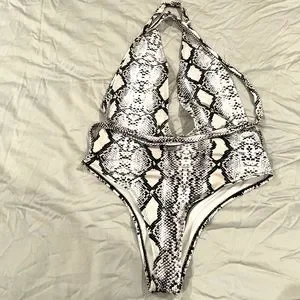 Women Multicross swimsuit Size XL. Snakeskin black and white print. This swimsuit can be tied multiple different ways