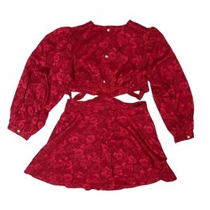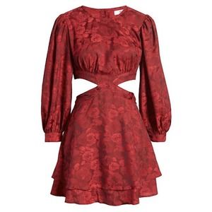 RAHI NWD Flora Cutout Mini A Line Dress Red Sz L Tie Back Button Back 7/8 Slv