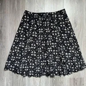 TOAST Black Patterned A-Line Below Knee Skirt UK 12