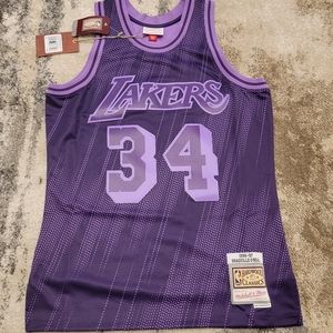 This Mitchell & Ness jersey is made with high-quality materials and is perfect for wearing during the regular season or as a collector's item. It is an excellent addition to any fan's sports memorabilia collection and is a must-have for any true Lakers fan. Get your hands on this jersey today and show everyone your dedication to the Los Angeles Lakers.