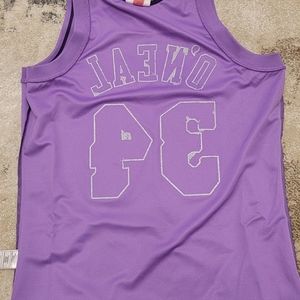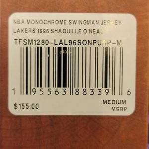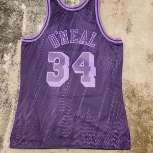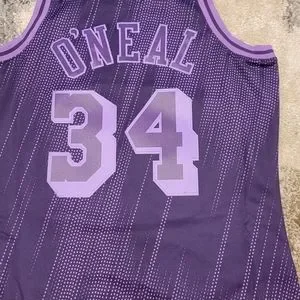Show off your love for the Los Angeles Lakers and basketball with this Shaquille O'Neal Mitchell & Ness Monochrome 96-97 Swingman Jersey in size M. This jersey features the official team colors of purple and gold, with O'Neal's name and number prominently displayed on the back. It is officially licensed by the National Basketball Association (NBA) and is perfect for any fan looking to showcase their team spirit.