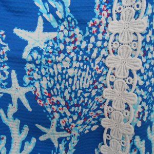 reef print dress rare find ocean blue with reef and starfish trimmed in white. Great design for your lilly colections or first time purchase size 14 gently loved like new I always take care in wrapping and shipping