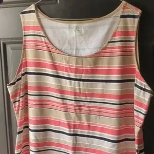 Kim Rogers Women’s 🧡 Sz 2X Coral/Tan Stripes Cotton Sleeveless Tank Top