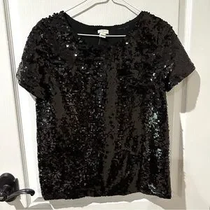 J.Crew Black SequinShort Sleeve Top. NWT