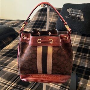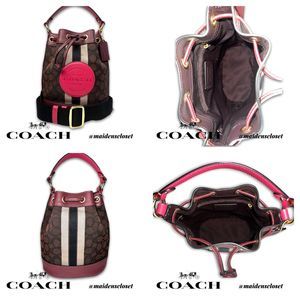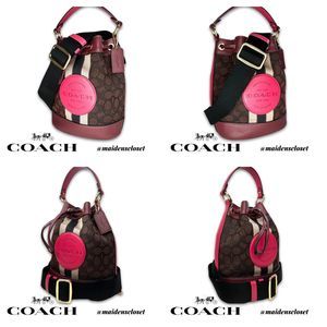 Coach Signature Jacquard Dempsey Bucket Crossbody Bag With Stripes and Patch