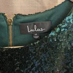 Lulu's mini dress. holiday or party dress. green sequence with lining underneath. medium size. 33 inches long. no flaws or imperfections. in Excellent condition.