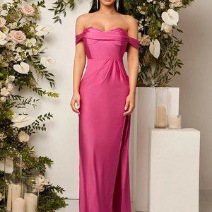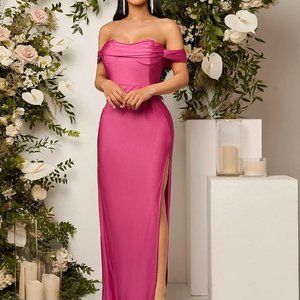 Pink Preppy Womens Off Shoulder Ruched Split Thigh Bridesmaid maxi Dress