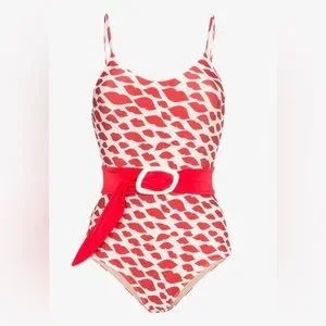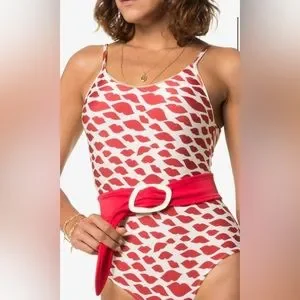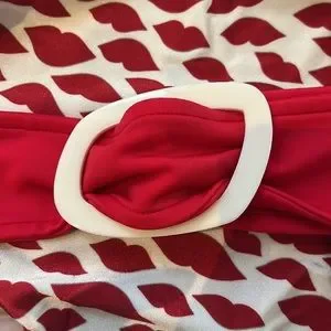 Adriana Degreas is one of the most famous luxury beachwear designers in the world. This in one iconic piece of her collection, with the bacio print. It comes with a red belt. New with tag and the original plastic bag. It can be worn beyond beach or pool, as a one piece with a skirt or a shorts.