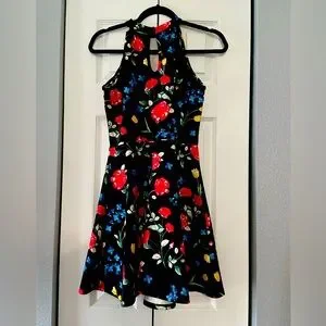 No boundaries black floral dress size 7-9 NWOT Never worn Juniors Shorter skirt Super cute!