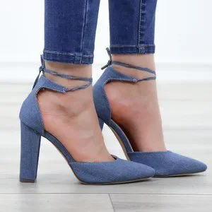 Denim Pointy Toe Block Lace-Up High Heel Pumps