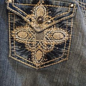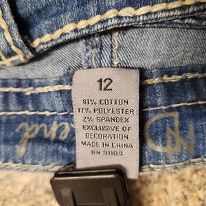 New Direction Weekend Crops. Light Blue Wash. Back Pockets are embroidered with decorative stitching and sequins. Also, sequins on hem line of both pant legs. Size 12.