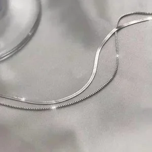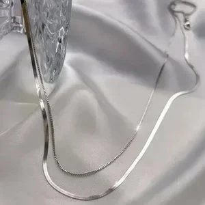 NEW DOUBLE LAYER 925 STERLING SILVER CHAIN NECKLACE