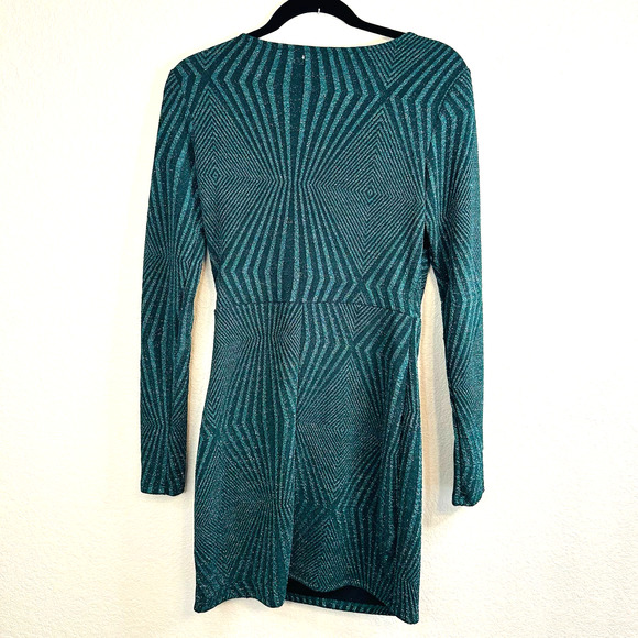 Mi Ami Francesca’s Women's Green Long Sleeve Coral V-Neck Mini Dress Size Medium