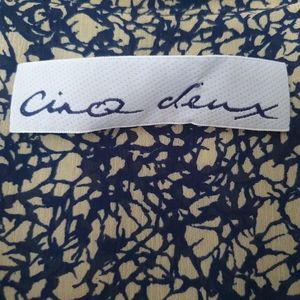 Vintage Cinq Deux Beige & Navy Two Piece V-Neck Blouse & Pleated Skirt