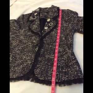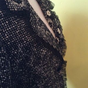 Karen Kane Great Black & Ivory Woven Jacket adorned with buttons, tulle trim & flowers...such a fun jacket to throw on with jeans, dresses, anything!