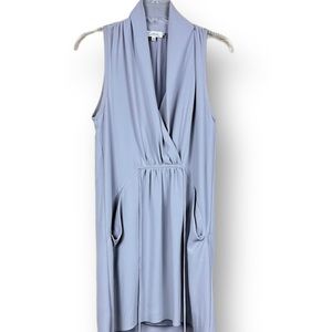 This is a faux-wrap mini dress with a babydoll silhouette and pockets. It's made with lightweight, flowy fabric that drapes beautifully. Origin: Fabric from Japan poly. Excellent preowned condition. Size XXS Please use my photos as part of description. Due to deferent camera and light color of the item can be slightly different. Stock photos of similar item in deferent color to show fit only. A32