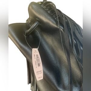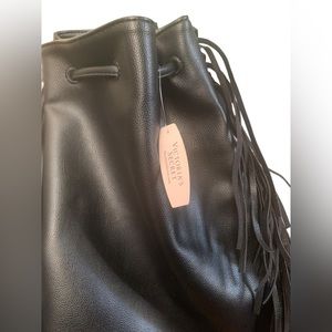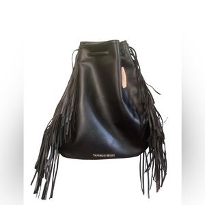 NWT Victoria's Secret Limited Edition 2015 Fringe Faux Leather Tote Bucket Bag Black