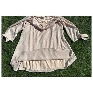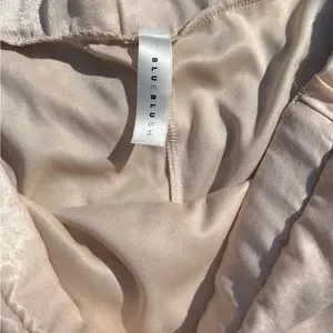 NWOT-Sz-L-blue blush brand off shoulder dress with ties at sleeves