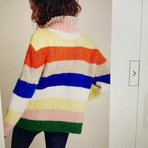 Anthropologie Gloria rainbow striped turtleneck sweater. Worn a few times. Multicolor. Chunky knit. Boxy relaxed fit. Pullover. Beautiful colors. Acrylic/polyester fabric content.