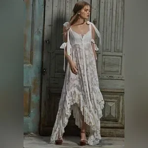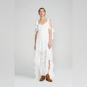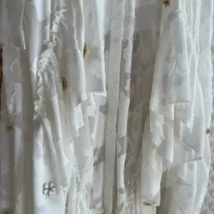 Ethereal and femme, this maxi dress is featured in a soft silky fabric with a textured floral pattern with allover metal stud detailing.