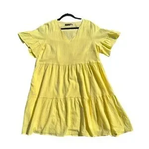 NWOT-FancyInn brand yellow tiered dress with pockets 💛