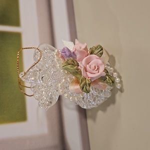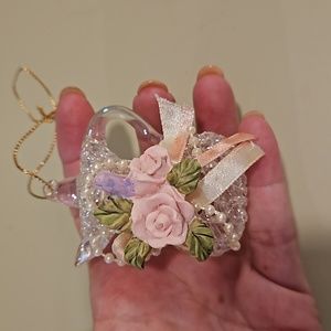 Shabby Chic spun glass jug pitcher roses pearls ornament decor Christmas Mom