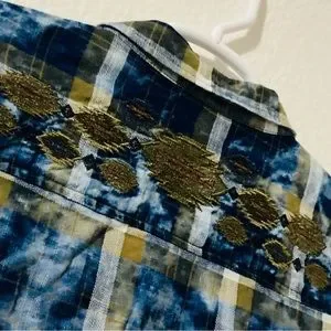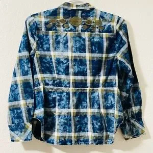 Wrangler Plaid Tie Dye Southwestern Embroidery Top Women’s Snap Western Shirt
