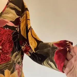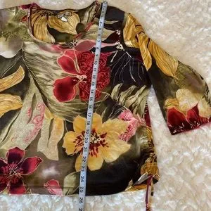 Caribbean Joe women’s multi color big floral pattern, 3/4 sleeve, rushed sides