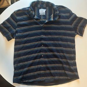 Size large, purchased from Target, never worn just tried on and didn’t end up liking or wearing. It’s a cotton/t shirt material