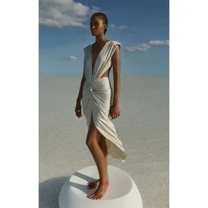 Free spirits, shine on: the Baobob Mia midi dress, with its body-con silhouette, open back, plunging neckline and daring front slit is a modern statement in the making.