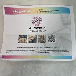 Studded detail, Shiny accents, Belt, rolled leather handles, a detachable shoulder strap, a snap closure, fabric lining with leather trim, an interior zip, and interior slip pockets. Comes with authentication by 3rd party.