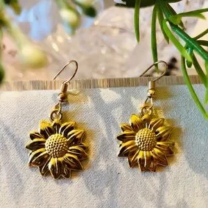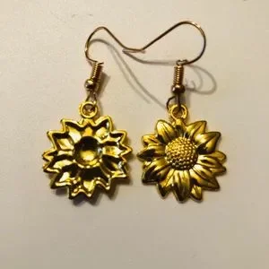 These are adorable and lightweight gold tone sunflower earrings! Beautiful detail for each petal with a high shiny surface.