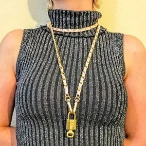 ◾ authentic Louis Vuitton padlock and matching key gold tone brass pendant necklace with Unbranded chain.really beautiful and luxury for use every day
