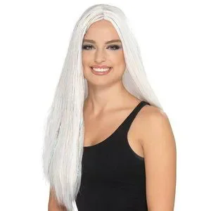 Be someone new for the night this Halloween with this wacky faux hair White Tinsel Wig.