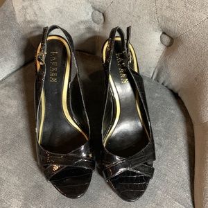 Ralph Lauren black patent leather sandals. Size 9.