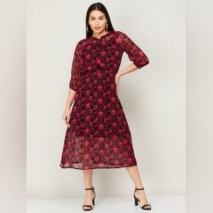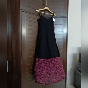 Melange Black & Red Floral Print A-Line Black Detachable Spaghetti Ethnic Dress