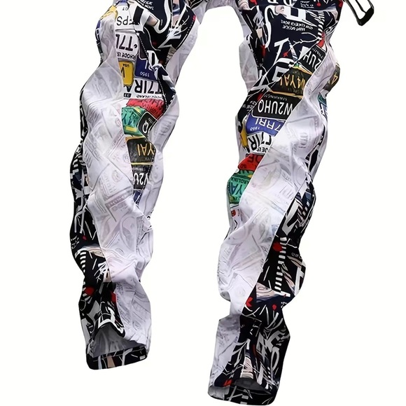 NWT!!! Mens stylish multi color graphic print all over jeans; Sz 38W