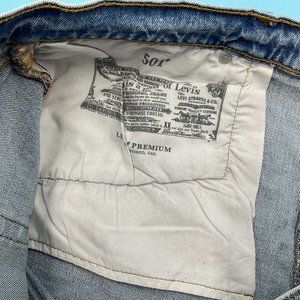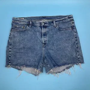 Levis 501 Blue Denim Distressed Stretch Shorts Button Fly Summer Casual W40