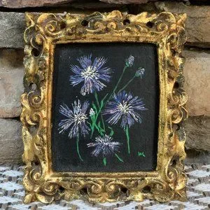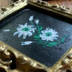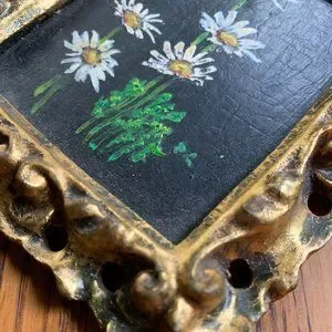 VTG 4 Floral Original Oil Paintings Gold Frames Black Philippa Connolly 1970