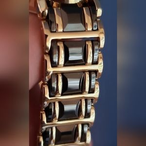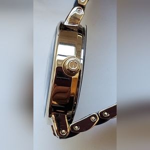 Elgin Women's EG353 Gold-Tone Black Ceramic Crystal Accented Watch. NWT.