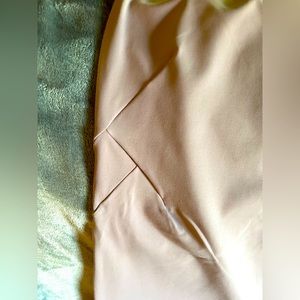 The legs are tapered. There are 2 open front slip pockets.