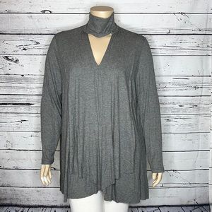 SB Suzanne Betro NWT Size 3X Gray Choker Style Neckline Drape Detail Tunic Top